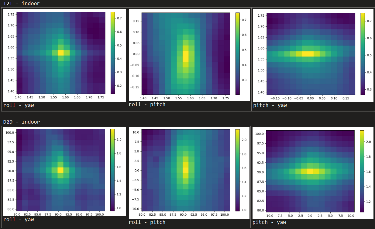Note: You can plot mutual information scores over grids of extrinsic param pairs by uncommenting any of the following lines in the main script file