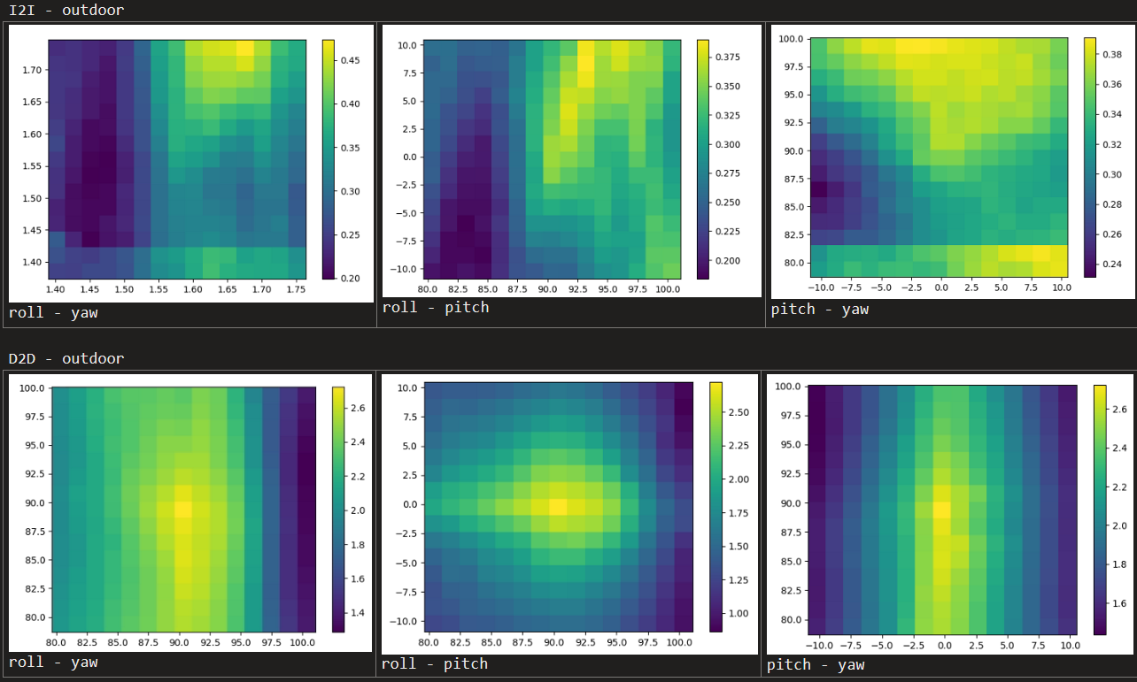 Experiments show the I2I calibrated results can converge well and be stable in indoor scenes, but performs poorly outdoor.