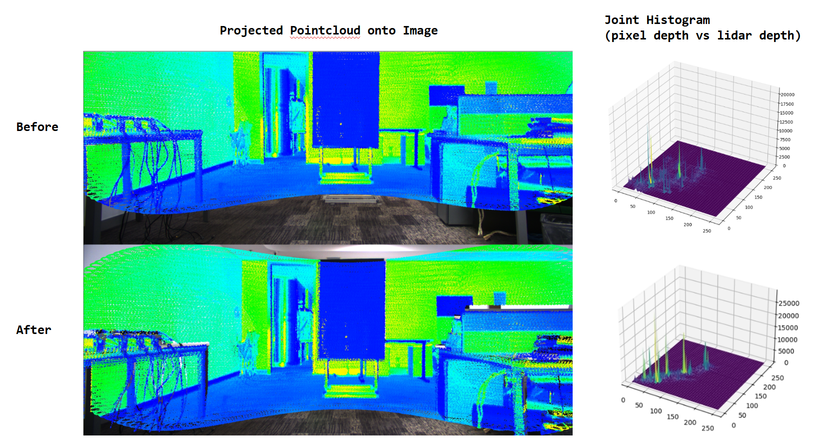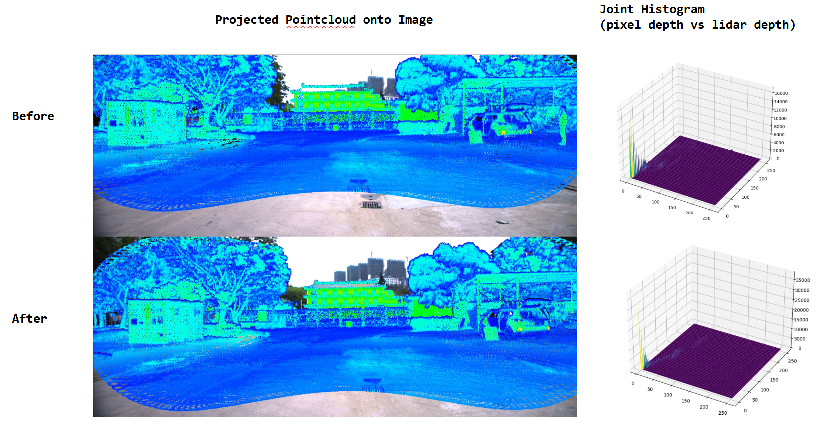 3) computing histograms: update each histogram withnp.histogramthe whole vector of pixel intensity / lidar intensity