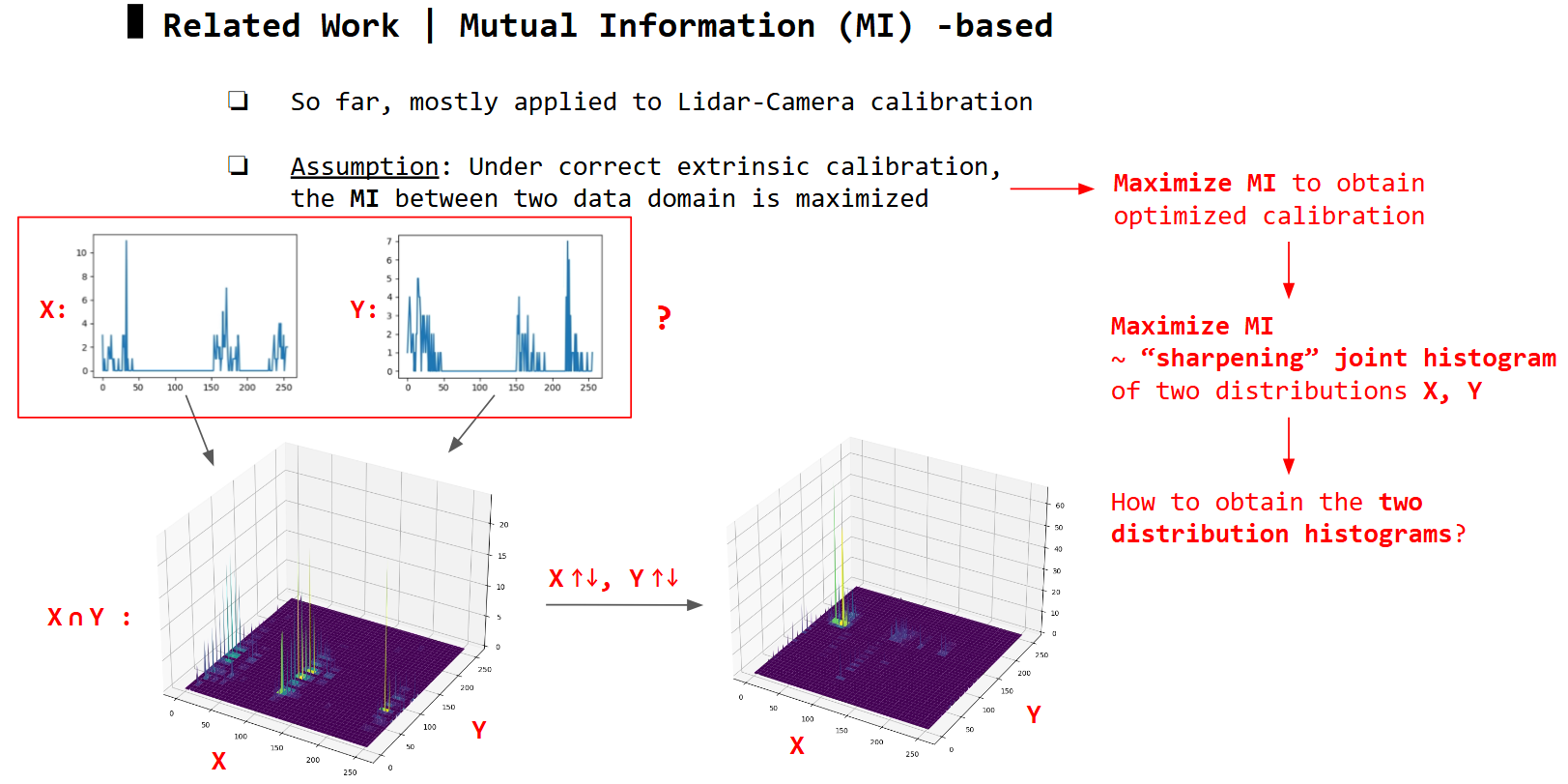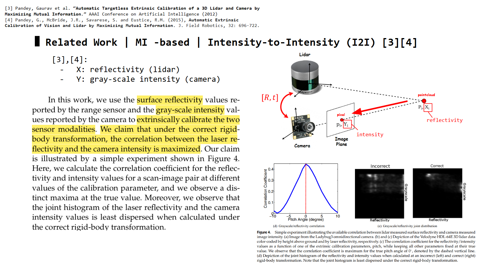 Based on the underlying formulation of the two distributions X & Y, MI-based methods can be categorized into intensity-to-intensity (I2I) or depth-to-depth (D2D) methods.